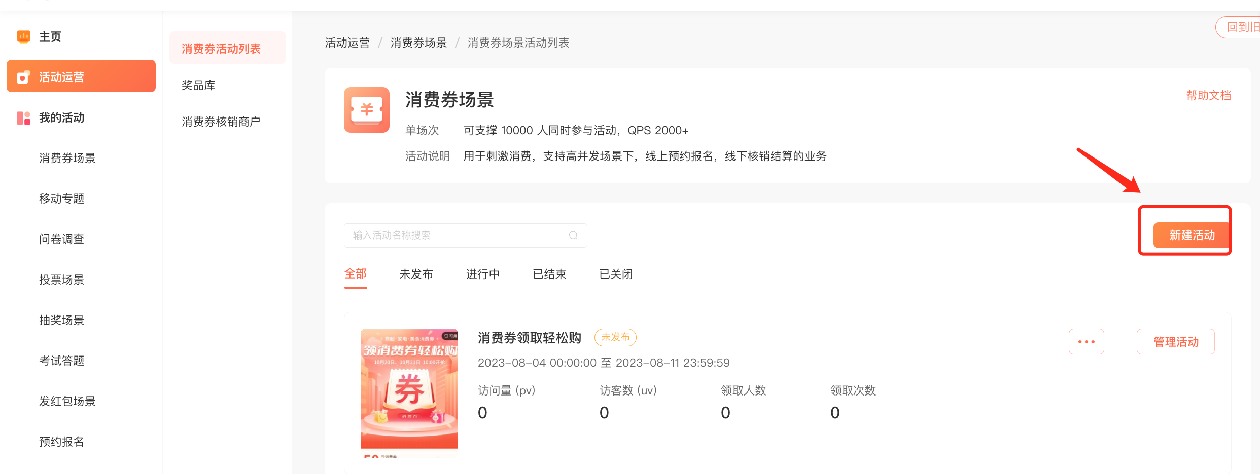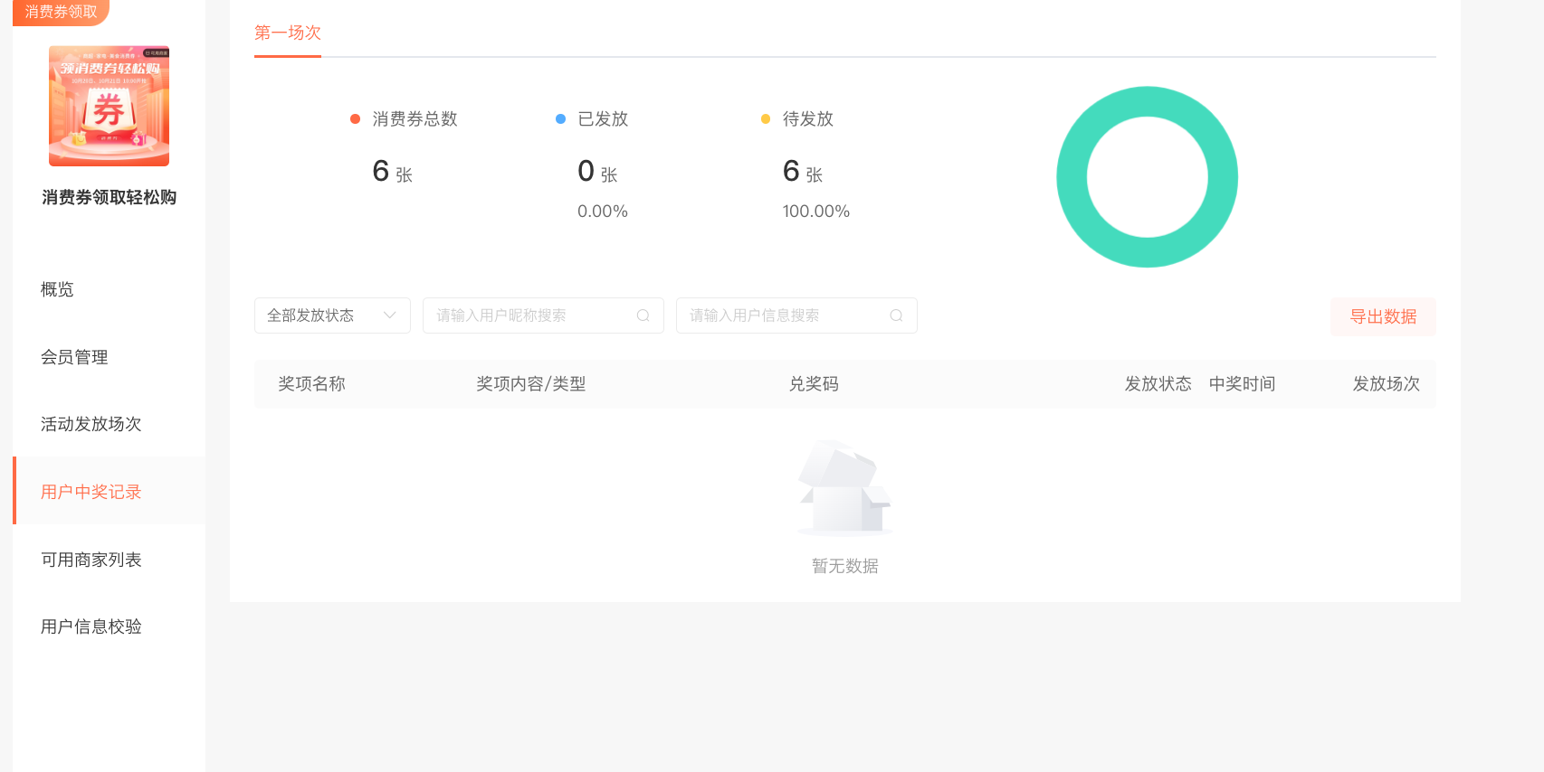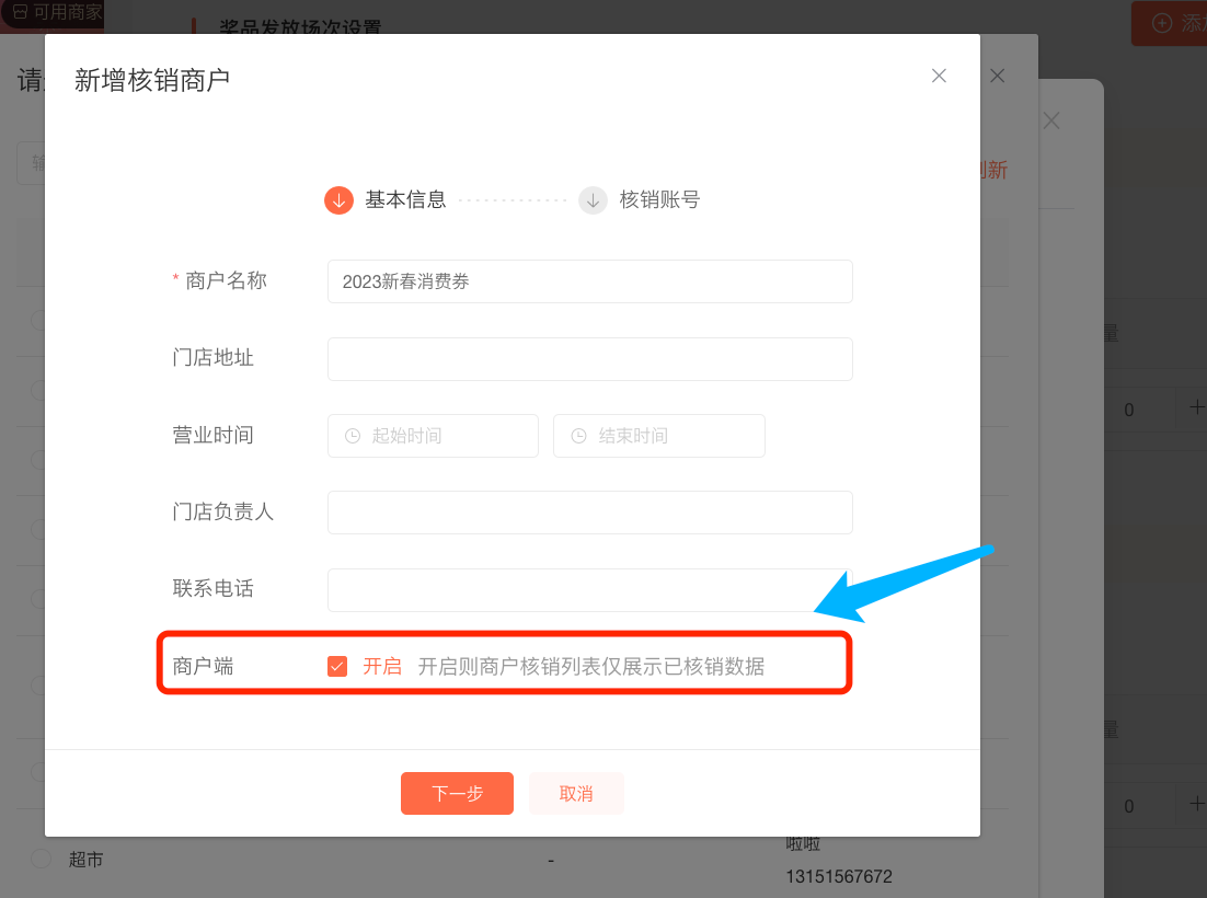注意:商户端一定要开启—作用:商家登陆核销系统的时候,只能看到自身的核销数据。看不到用户领取消费券的数据。