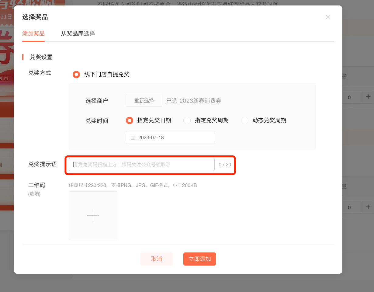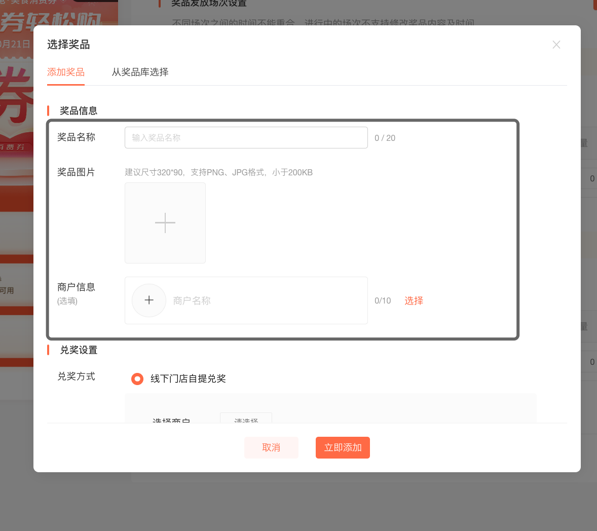 添加消费券奖品内容