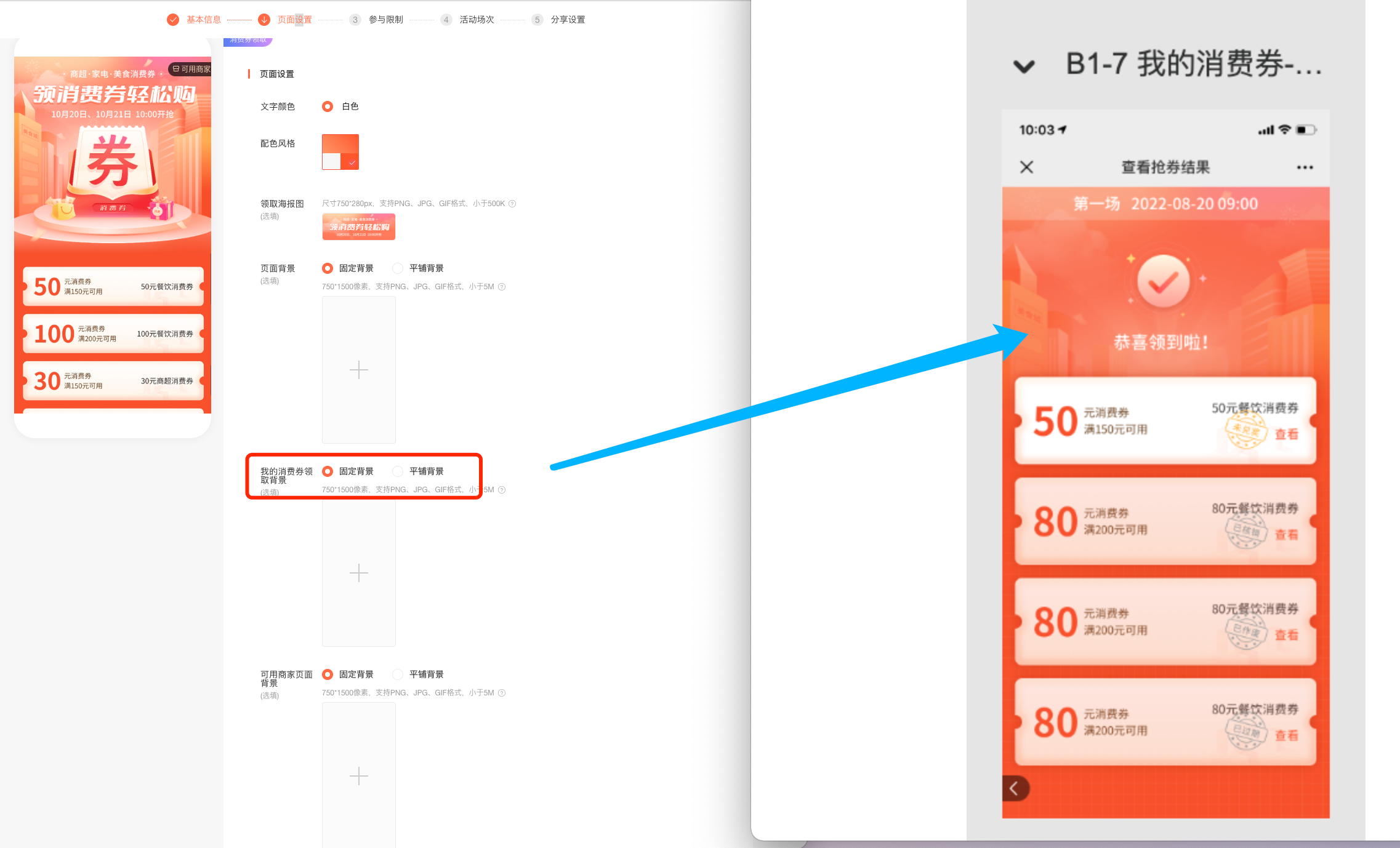 (1)设置消费券领取时间